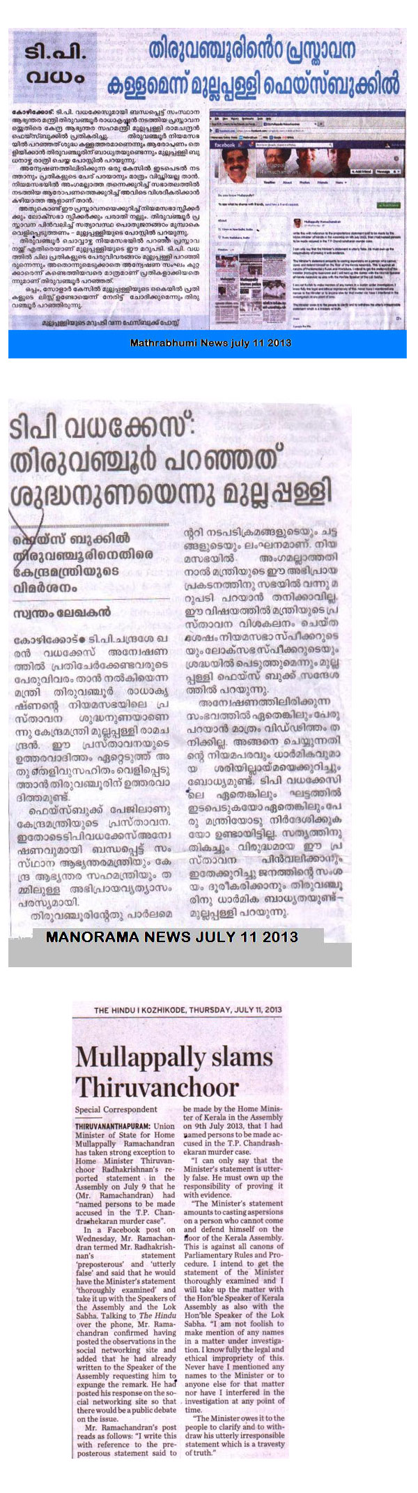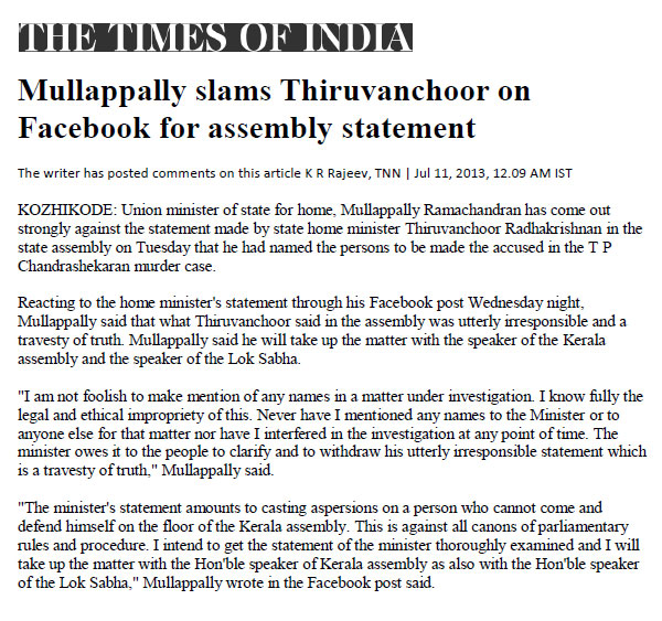 Mullappally slams Thiruvanchoor on Facebook for false statement in Assembly